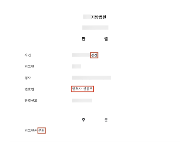 초기 상담 당시 피고인은 단호하게 혐의를 부인하였고, 저는 피해자의 주장 전체를 선입견 없이 분석하면서 사실관계를 철저히 재구성했습니다. 핵심은 피해자의 진술 신빙성을 구조적으로 흔드는 데 있었습니다. 저는 피해자가 강간을 당했다고 주장한 직후에도 피고인과 외출을 하고, 가족 행사에 동행하며 비용을 부담하는 등 일반적인 피해자와는 전혀 다른 행동양식을 보였다는 점에 집중했습니다. 수사기록을 정밀 검토한 끝에 진술의 변동 시점과 내용을 비교 분석하여, 법정에서는 진술 간 모순을 구체적으로 짚어내며 설득력 있게 반박하였습니다. 재판부는 “진술의 핵심 요소가 반복적으로 바뀌고, 강간을 주장한 경위 역시 자연스럽지 않다”고 판단하며 무죄를 선고했습니다. 저는 성범죄 사건에서도 억울한 피고인을 위한 방어권 보장은 절대적으로 중요하다고 생각하며, 앞으로도 진실을 지키기 위한 변론을 멈추지 않을 것입니다.
