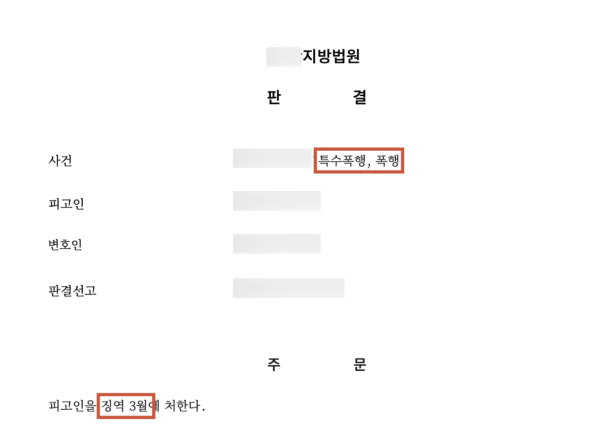 승소결과 - 징역 3개월
