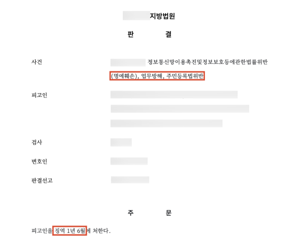 승소결과 - 징역 1년 6개월