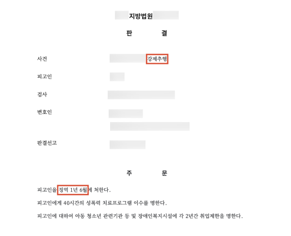 승소결과 - 징역 1년 6개월