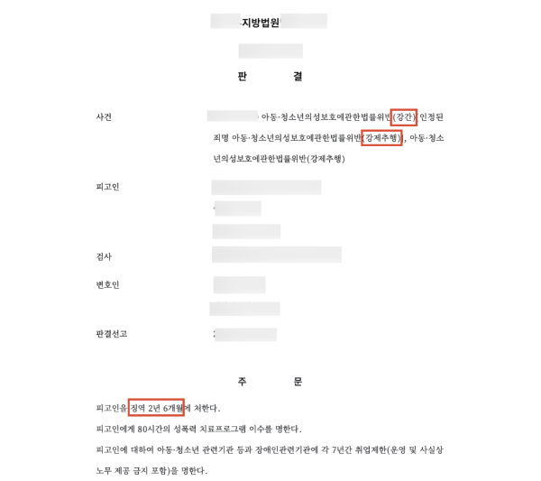 본 사건은 피고인이 자신이 운영하는 식당에서 일하던 미성년 종업원을 상대로 반복적인 추행을 저지른 중대한 성범죄입니다. 피해자는 피고인을 사장으로서 신뢰하고 따르던 상황이었으며, 피고인은 이 같은 관계를 악용하여 식당 내부뿐 아니라 자신의 자택, 아파트 단지 등에서 총 6차례에 걸쳐 피해자를 추행하였습니다. 피고인은 일부 행위를 인정하면서도 이를 ‘친밀감의 표현’이라 주장하였으나, 피해자는 지속적인 성적 침해로 인해 정신과 치료를 받았고, 끝내 극단적인 선택으로 생을 마감하였습니다. 재판부는 피고인의 범행 횟수와 수법, 피해자의 사망 경위 등을 종합적으로 고려하여 징역 2년 6개월의 실형, 성폭력 치료프로그램 80시간 이수, 아동·청소년 관련 기관 및 장애인 복지시설 7년간 취업제한을 명하였습니다.
