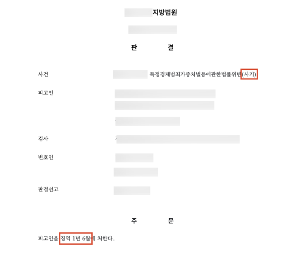 승소결과 - 징역 1년 6개월