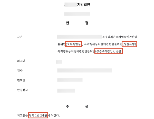 승소결과 - 징역 1년 2개월