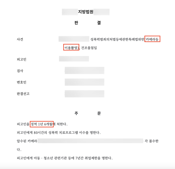 피고인은 공연장에서 음향을 담당하겠다고 하며, 여성 출연자들의 탈의 공간에 원격 조종이 가능한 몰래카메라를 설치하고 반복적으로 신체를 불법 촬영하였습니다. 촬영을 위해 무단 침입한 사실도 확인되었으며, 피고인은 초기에 혐의를 부인했으나, ‘원격 촬영 중’이라는 문구가 찍힌 카메라 화면과 영상 파일, 그리고 장비 부속품에서 검출된 본인의 DNA로 인해 결국 범행을 인정하였습니다. 피해자는 30명 이상으로 확인되었고, 법원은 계획적이고 지능적인 범행 수법과 피해 회복 노력의 부재를 고려하여 징역 1년 6개월, 성폭력 치료프로그램 80시간, 아동·청소년 기관 7년간 취업제한, 범행 장비 전부 몰수 명령을 선고하였습니다.