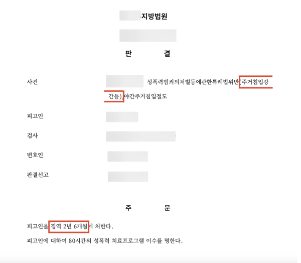 피해자는 사건 직후 일상의 안전감이 무너진 상태에서 극심한 불안을 겪고 있었고, 특히 야간 주거침입이라는 특성상 피해 공간 자체가 더 이상 안전하지 않다고 느끼며 도움을 요청하였습니다. 저는 이 사건에서 형사처벌과 동시에 실질적인 회복 조치를 병행하는 전략을 수립하였습니다. 초기 단계에서부터 피고인의 침입 방식, 범행의 계획성과 강간 시도 정황 등을 구체적으로 입증할 수 있도록 증거를 정리하고, 피해자의 공포와 정신적 피해를 강조한 의견서를 제출하였습니다. 피고인의 반성과 가족 사정이 일부 고려되었지만, 피해자의 고통과 사회적 위험성이 크다는 점을 재판부가 명확히 인식하도록 했습니다. 저는 단순한 처벌을 넘어, 피해자가 사건 이후에도 계속해서 안정된 일상을 회복할 수 있도록 민사적 대응도 병행하였습니다. 특히 이런 사건에서는 감정에 휘둘려 피해자가 직접 합의를 시도할 경우, 결과적으로 손해를 보는 사례가 매우 많습니다. 실제로 수천만 원의 합의금 차이가 발생하는 경우도 드물지 않으며, 악용되는 사례도 존재합니다. 피해자 보호는 단지 형사 판결에 그쳐서는 안 됩니다. 저는 법적 조력을 통해 피해자가 다시 일어설 수 있는 실질적인 기반을 만드는 데 항상 집중하고 있으며, 이 사건에서도 피해 중심의 원칙을 끝까지 관철했습니다.