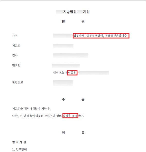 승소결과 - 집행유예