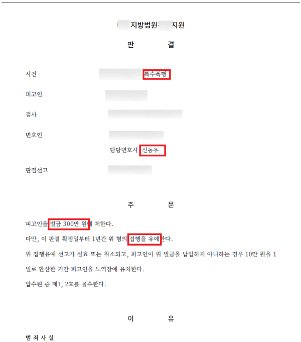 피의자의 상황을 자세하게 파악하여 참작사유로 호소하였고, 실제 폭행시에는 흉기를 사용하지 않았다는 점을 강력하게 주장하였습니다. 이를 위하여 주변 증거들을 철저하게 수집하여 피고인 측 주장을 관철시킬 수 있었습니다.