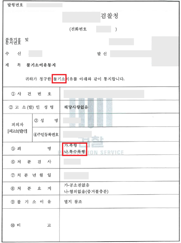 승소결과 - 불기소